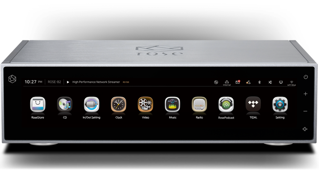 Hifi Rose RS150 là Network Streamer hiện là đầu streaming duy nhất hiện nay có khả năng phát trực tuyến hiệu suất cao cả hi-end audio lẫn video nhờ trang bị màn hình kích thước lớn lên đến 14,9in và khả năng xuất hình ảnh 4K. Màn hình này hỗ trợ cảm ứng chạm, giúp mặt máy thoáng, đủ rộng để hiển thị thông tin album và cả list nhạc trong danh sách playlist.