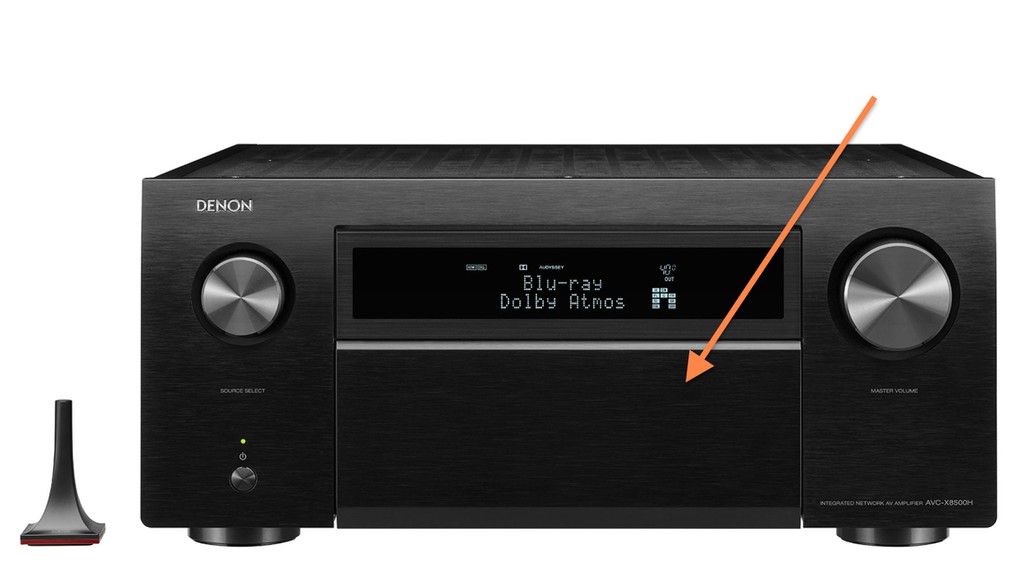Sản phẩm thứ 3 là hình ảnh quen thuộc của một receiver Denon, nó có ngoại hình trùng với cả 3 model hiện tại là AVC-X8500H, AVC-X6700H và AVC-X6500H. Xét về tỉ lệ giữa cửa lật và màn hình, rất có thể receiver kỷ niệm 110 năm Denon sẽ là bản nâng cấp từ model AVC-X8500H.
