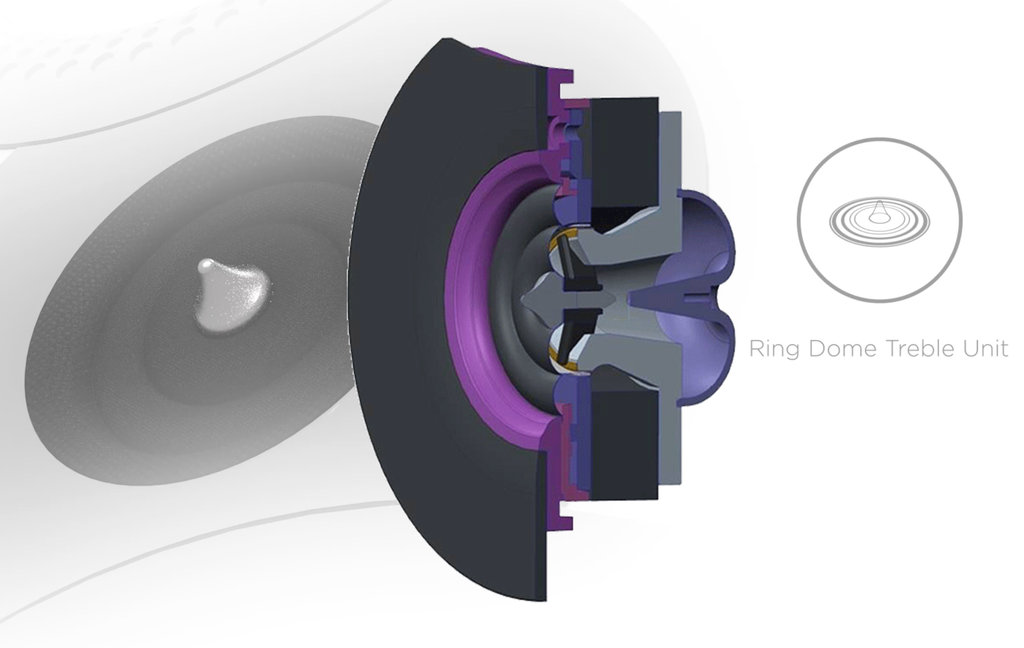 Thiết kế tweeter Ring Dome của Mission ZX-3 có đường kính lên đến 38mmTweeter vòng nhẫn đôi có tên Ring Dome của Misson có tâm là mũi kim loại hướng âm cố định ở giữa, xung quanh lần lượt là 2 màng loa đồng tâm. Voice-coil của tweeter này được bắt vào vị trí tiếp giao giữa vòng màng thứ nhất và thứ hai. Tweeter Ring Dome nhờ được tách màng loa thành 2 vòng nhẫn đã giảm đáng kể hiện tượng “break-up” (biến dạng màng loa khi driver hoạt động cường độ cao). Bên cạnh đó, độ nhạy và tốc độ đáp ứng của driver cũng nhanh hơn hẳn do tiết diện màng được chia nhỏ, điều này cũng cho phép loa mở dải cao tuyến tính lên đến 24kHz.